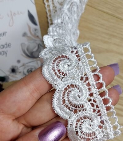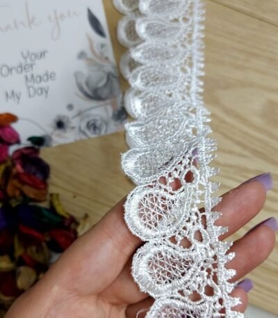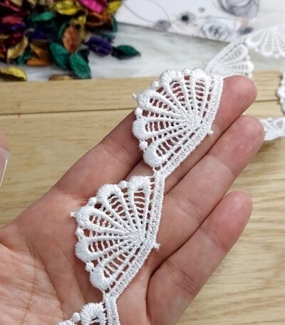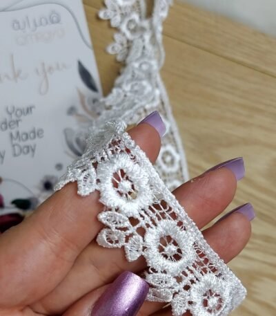 دانتيل فرنسي – ابيض – 3 وردات