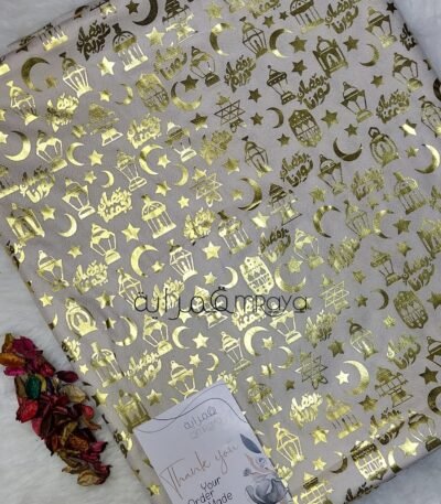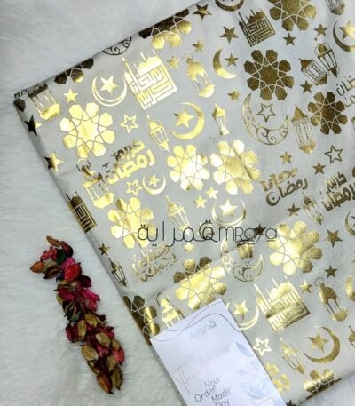 قماش رمضان / اوف وايت*دهبي حروف (نسيج)