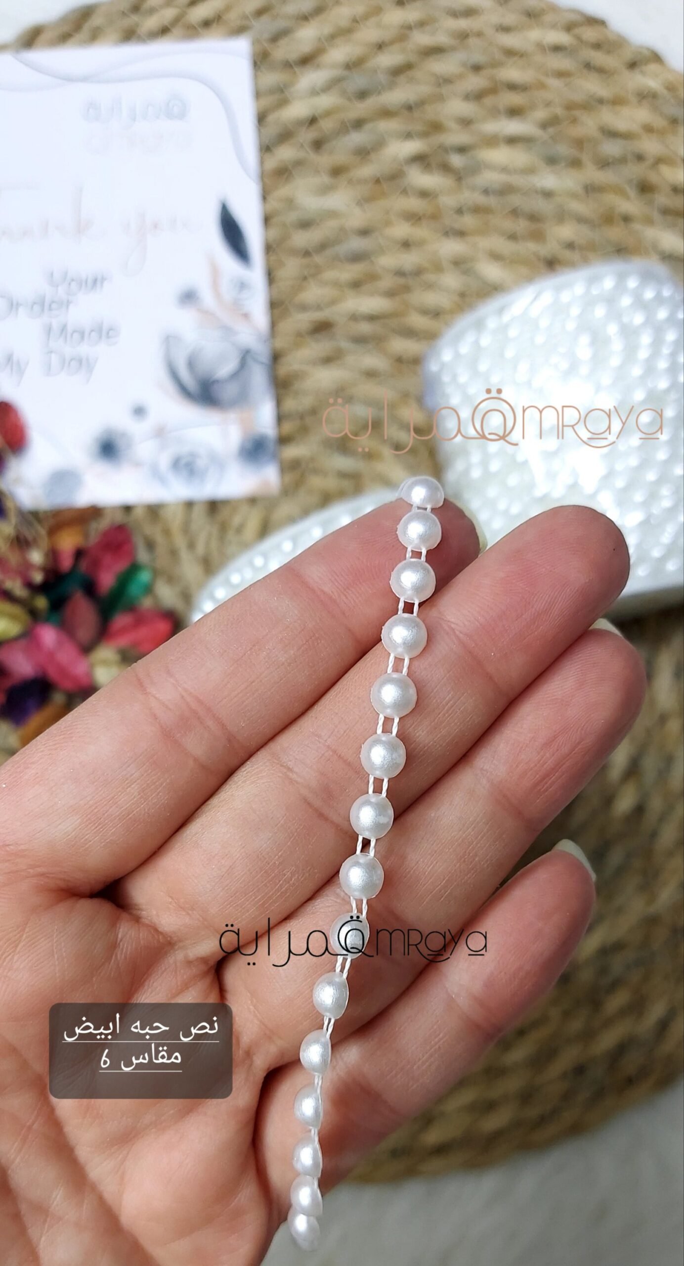 لولي – شريط نص حبه لولي – ابيض / مقاس 6 – بالمتر