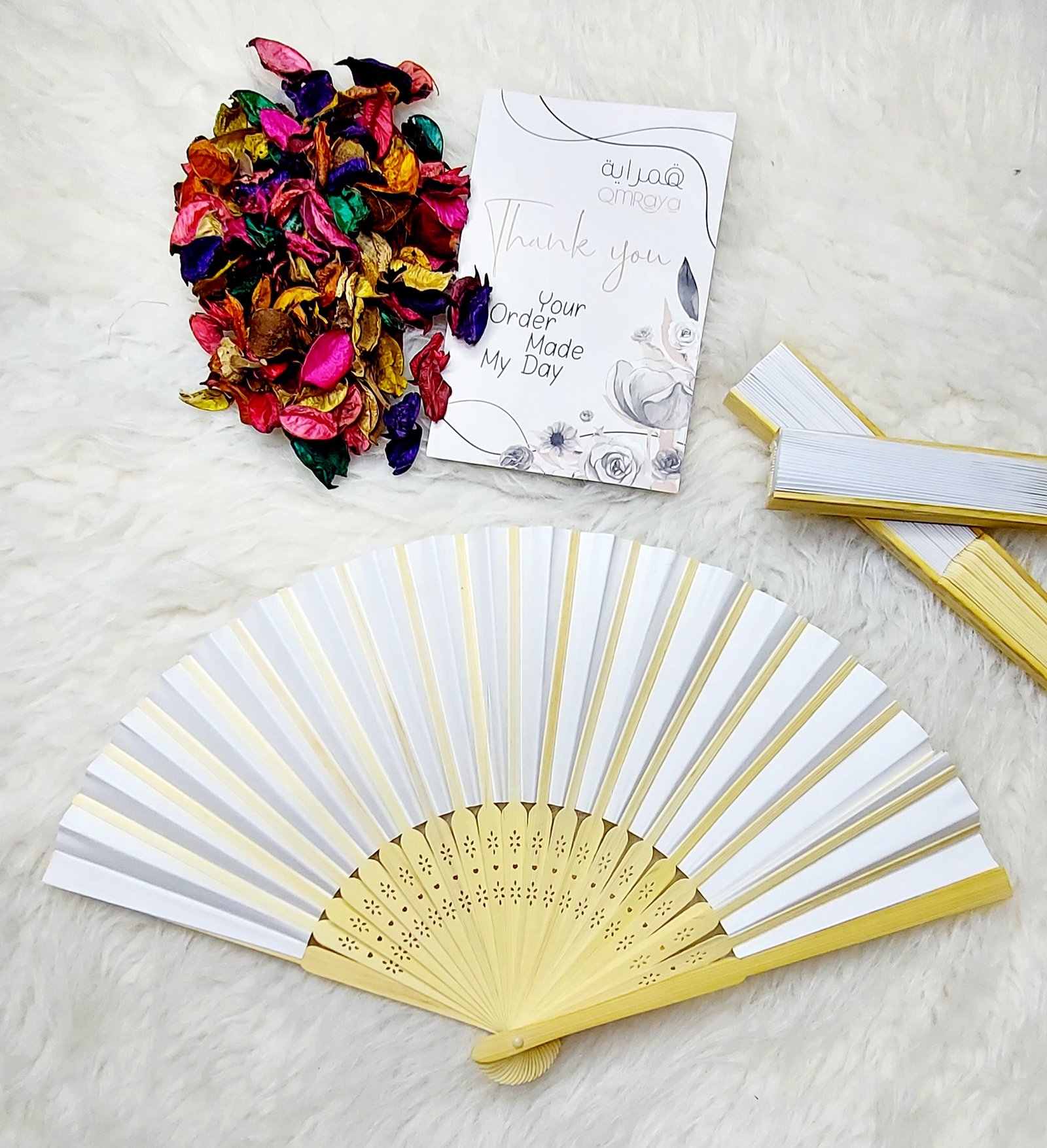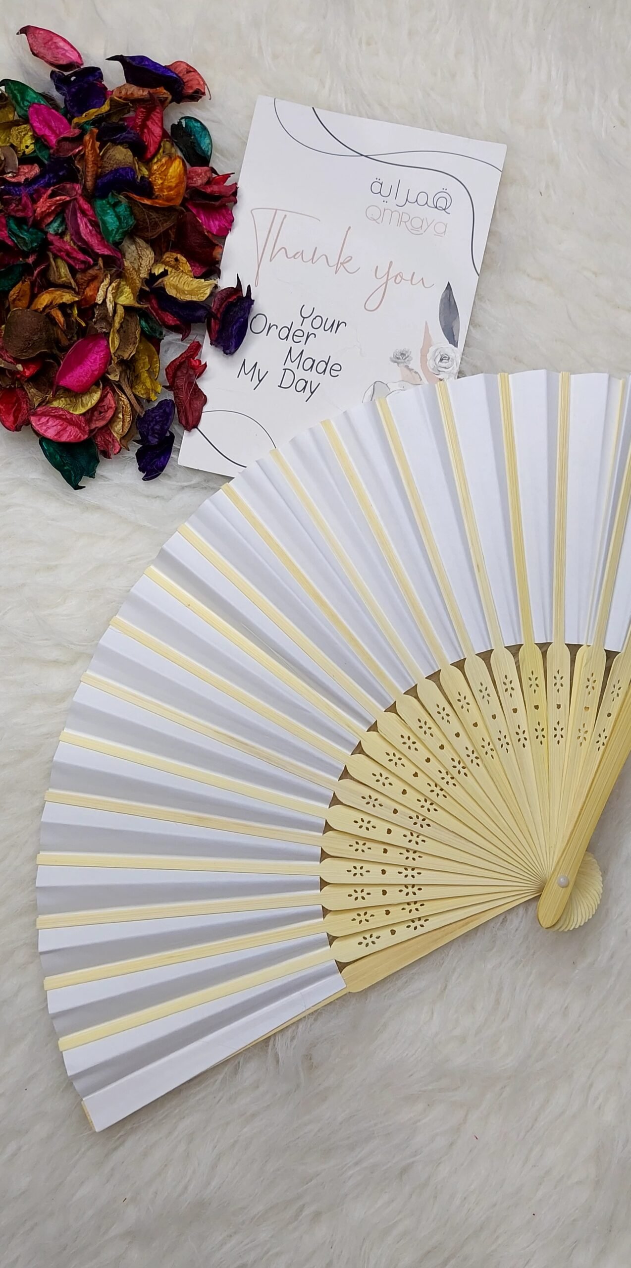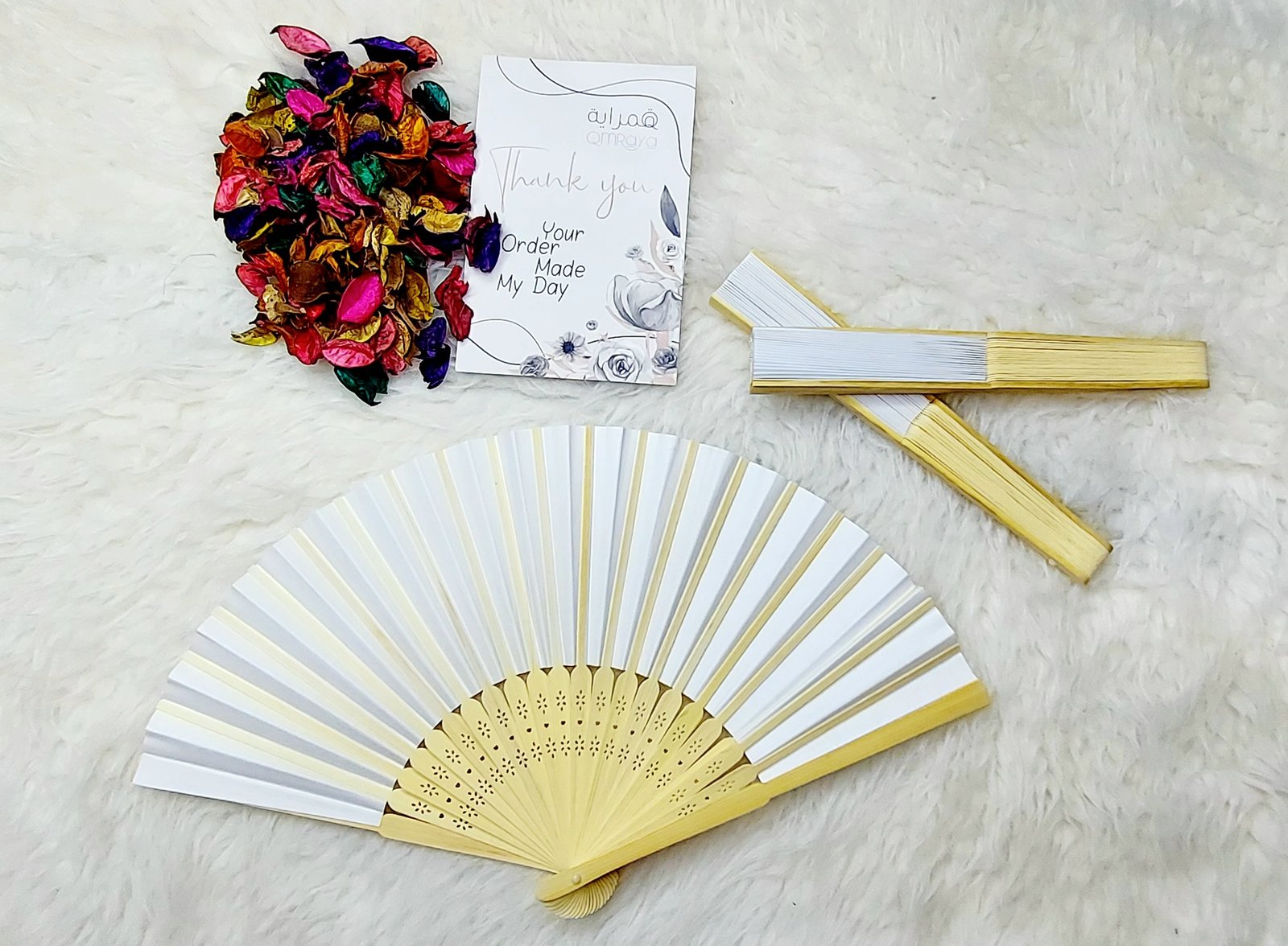مروحة العروسة – مروحه خشب + ورق ابيض